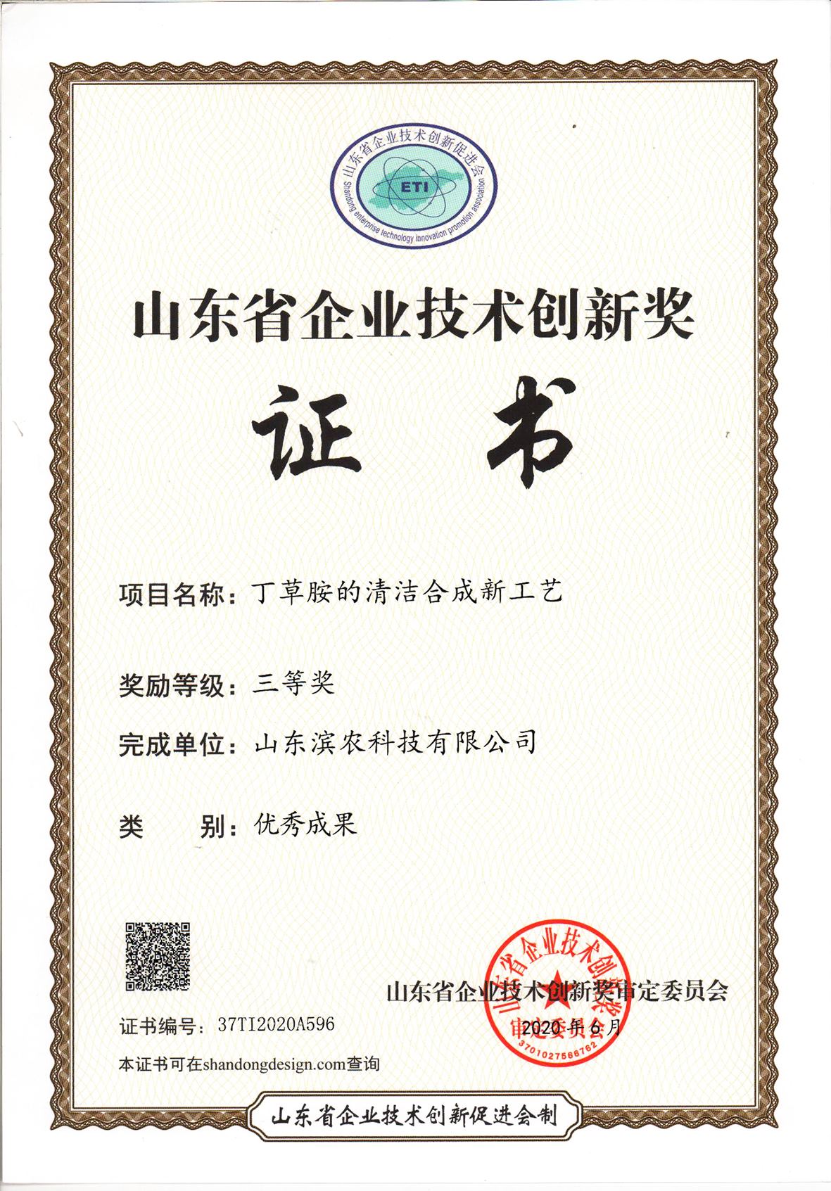 ■2021-04-08 2020-08-05 我公司成果“丁草胺的清潔合成新工藝”榮獲山東省企業技術創新獎優
