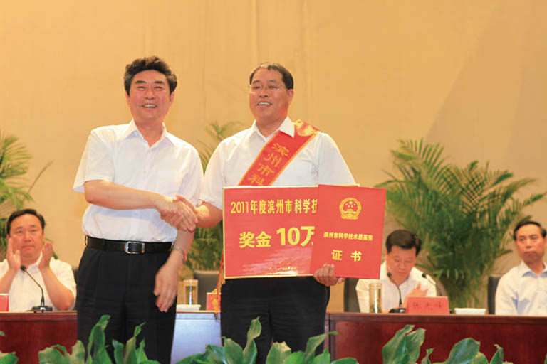 我公司董事長黃延昌榮獲2011年濱州市科學(xué)技術(shù)最高獎發(fā)布時間:2014-06-16 10:332012年3月19日,濱州市人民政府濱政字【2012】22號文件《關(guān)于2011年度濱州市科學(xué)技術(shù)獎勵的決定》公布了2011年獲得濱州市科學(xué)技術(shù)獎勵的單位和個人。我公司董事長黃延昌喜獲2011年度“濱州市科學(xué)技術(shù)最高獎”。 6月1日下午,在市政大廈隆重舉行的全市科學(xué)技術(shù)獎勵大會上,董事長黃延昌獲頒 “2011年度濱州市科學(xué)技術(shù)最高獎”,并獲獎金10萬元。 近幾年,我公司自主創(chuàng)新能力大幅提升,創(chuàng)新平臺建設(shè)步伐加快,為公司研發(fā)“高精尖”綠色農(nóng)藥提供了強力的技術(shù)支撐。特別是在農(nóng)藥合成及制劑的復(fù)配領(lǐng)域中均實現(xiàn)了重大創(chuàng)新與突破,為中國農(nóng)藥產(chǎn)業(yè)的發(fā)展壯大做出了重要貢獻:系統(tǒng)研究了多種不對稱催化劑的合成方法,研發(fā)出多種手性化合物合成所用的不對稱催化劑,解決了手性化合物合成中的關(guān)鍵、共性問題,開發(fā)出5個農(nóng)藥原藥新產(chǎn)品,填補了國內(nèi)空白。首創(chuàng)了多個多元復(fù)配制劑配方,解決了國內(nèi)部分農(nóng)作物田間農(nóng)藥品種少、成本高的難題,增添了農(nóng)藥新品種,提高了在國內(nèi)農(nóng)藥行業(yè)的市場競爭力。 ![]() |
