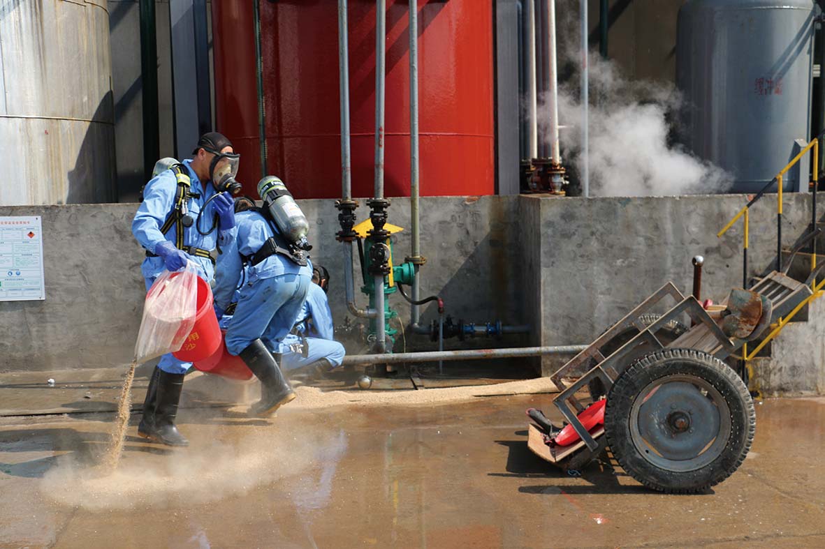 我公司組織綜合應急救援演練發布時間:2016-07-07 09:21本報訊 6月27日上午,我公司在合成二車間南側中間罐區進行了綜合應急救援演練,生產總監侯立國、安環總監郭安勇、總經理助理張樂樂、生產總監助理趙福廷及部分車間中層、員工近百人參加了此次演練。 首先,侯總強調了應急演練的重要性,要求各車間切實提高員工自身應急逃生能力。此次演練主要包括甲苯泄露初期應急處置,車間應急預案響應,泄露事故失控應急救援預案升級啟動、響應,專職消防隊現場救援,現場人員疏散及中毒人員搶救,現場洗消處置等環節,郭總擔任現場總指揮。最后,郭總對本次演練各應急小組的處置能力予以肯定,對今后安全管理工作提出了更高標準,要求通過實際行動來提高員工的應急救援能力。 此次演練險情真實,處置措施得當,救援人員配合默契,取得了預期效果,有助于提高車間和員工應對物料泄露中毒事故的處置能力。