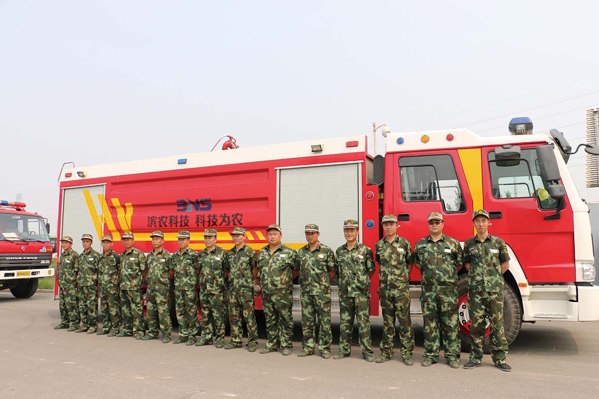 我公司消防隊參加工業園區應急救援演練發布時間:2016-07-07 09:29本報訊 6月22日,我公司消防隊作為工業園區消防聯動單位參加了2016年濱州工業園區應急救援演練。消防隊員快速反應、緊張有序的行動得到了園區領導和友鄰企業的稱贊。 濱農科技消防隊現有專職消防員15人,配備了兩臺消防車和兩部消防專用報警電話(5087119/