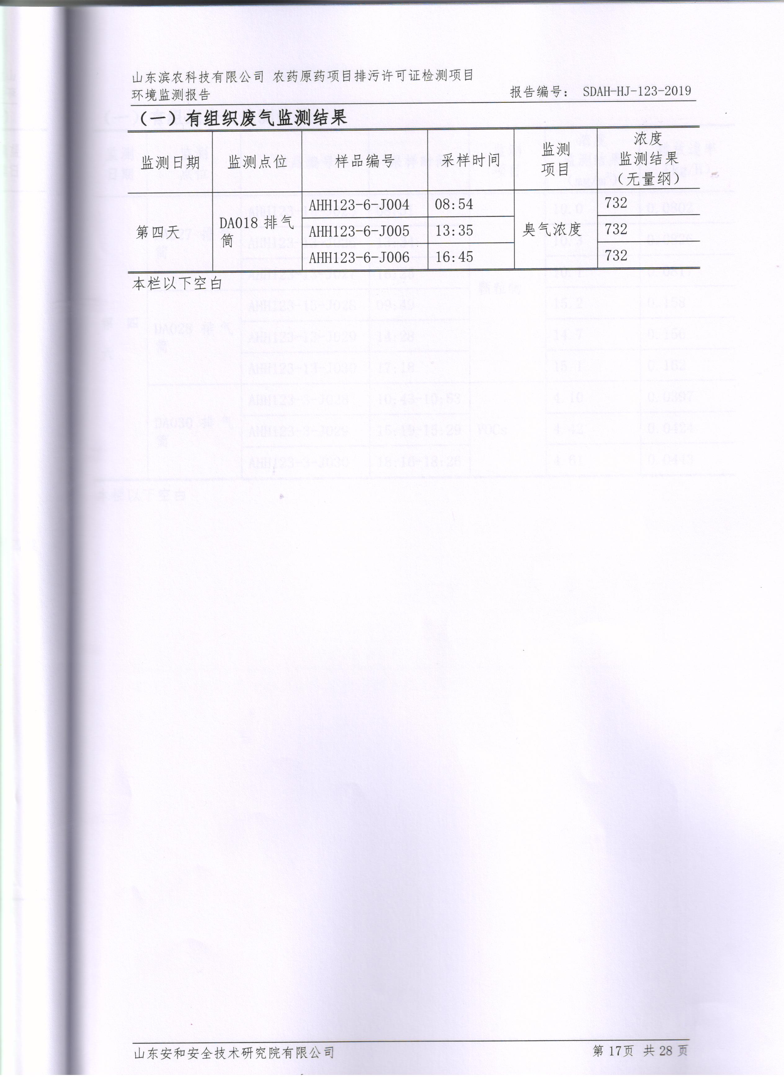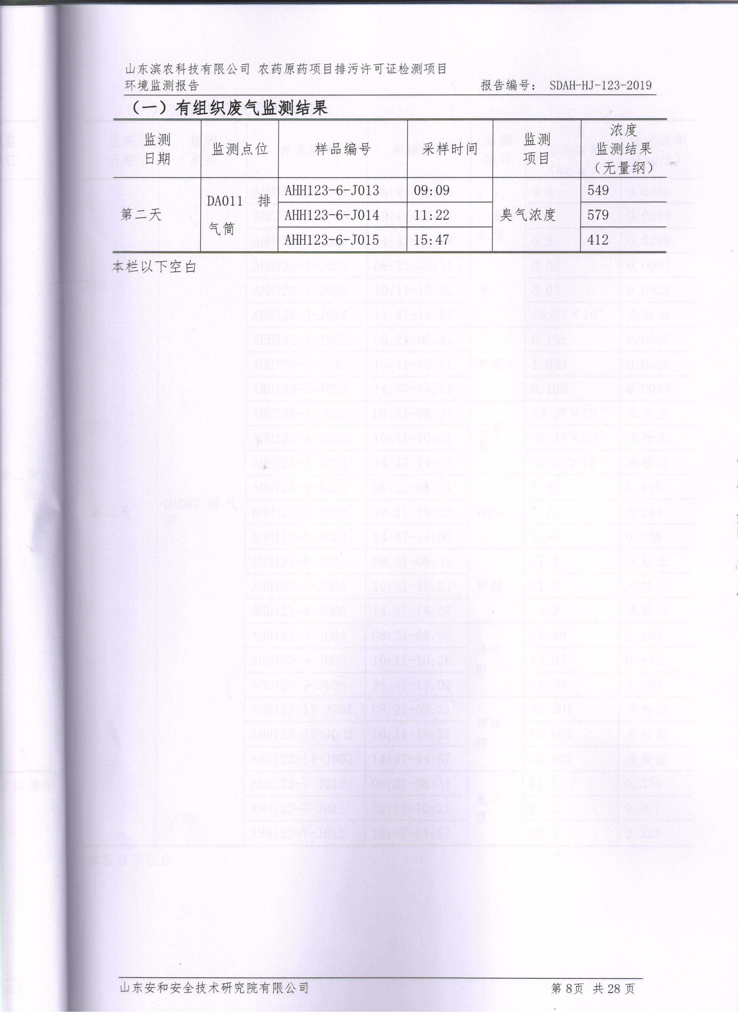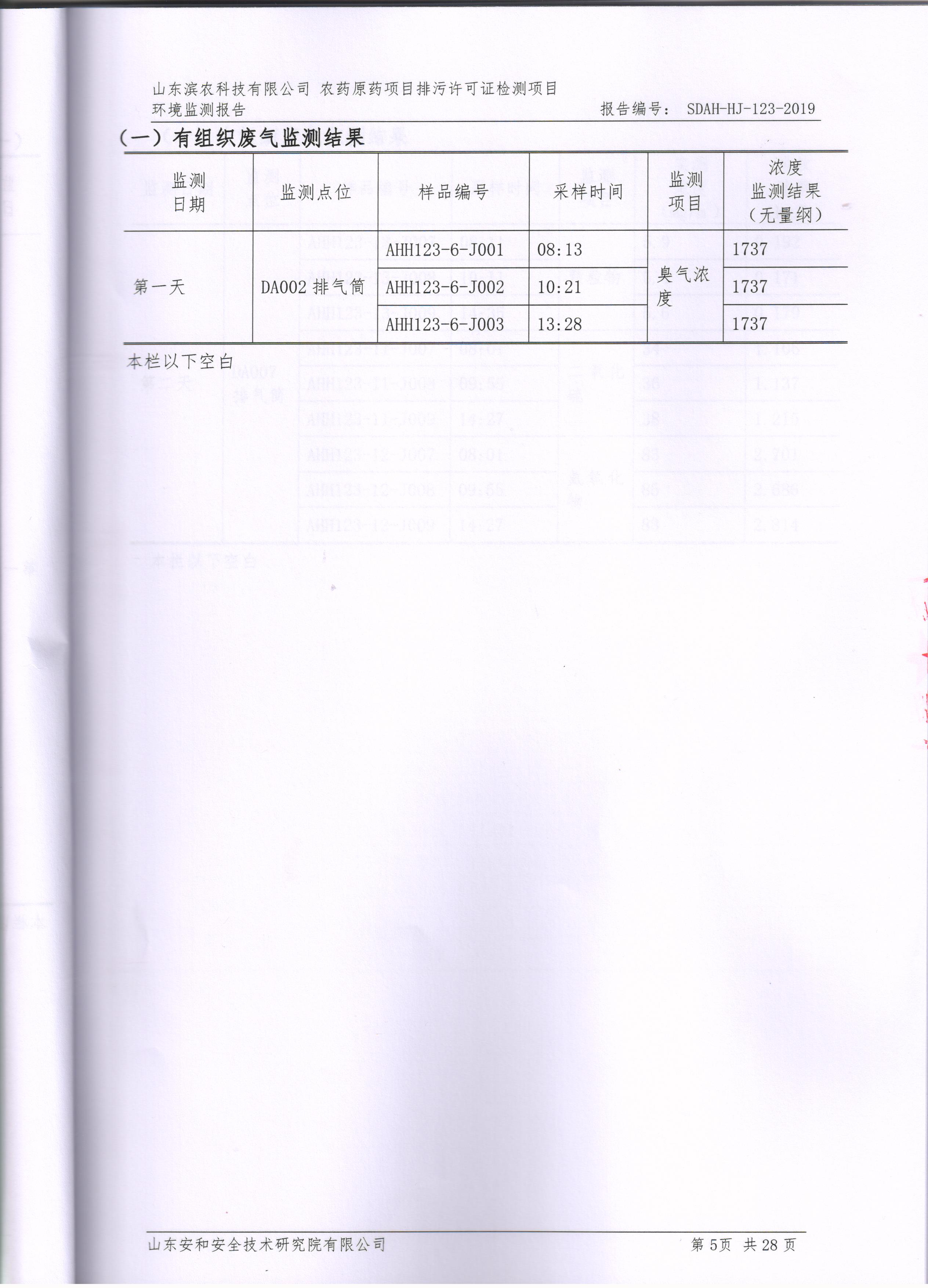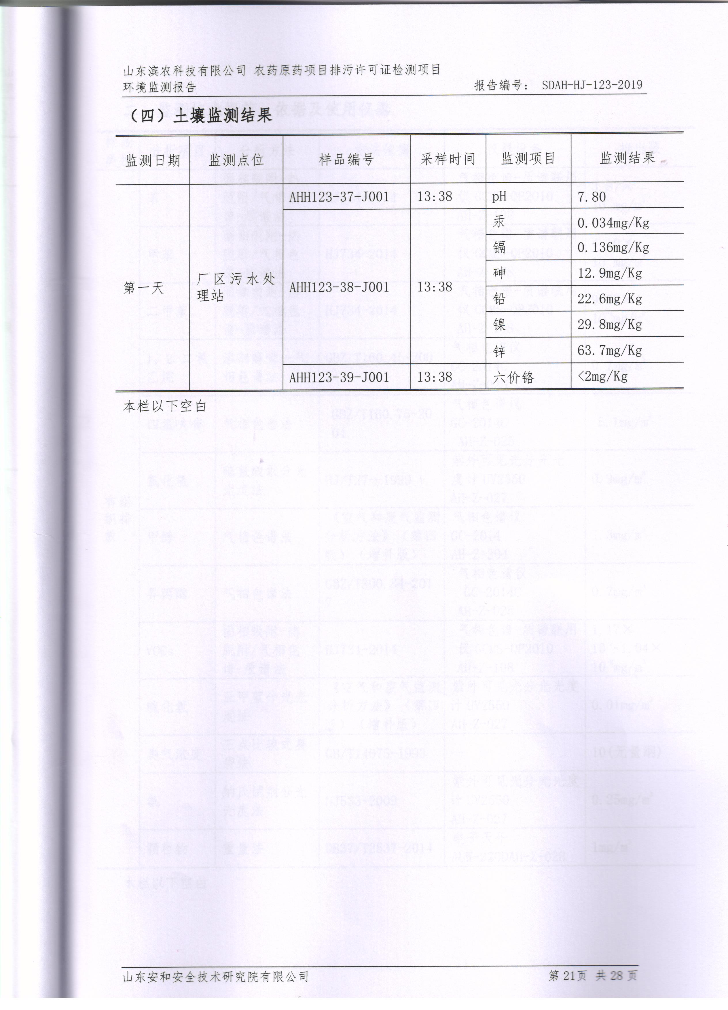 山東濱農科技有限公司2019第一季度環境檢測報告(安和)