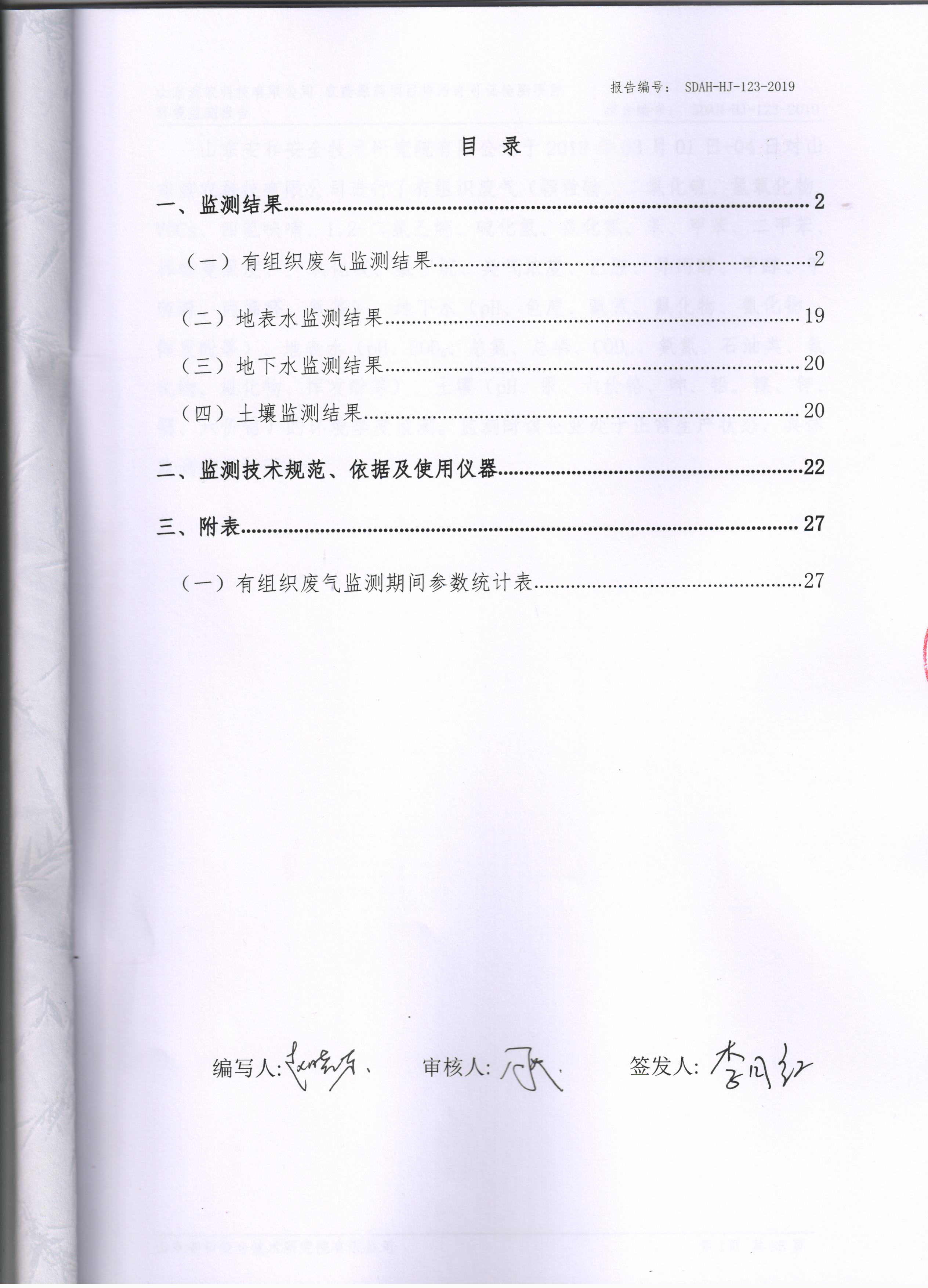 山東濱農科技有限公司2019第一季度環境檢測報告(眾泰)