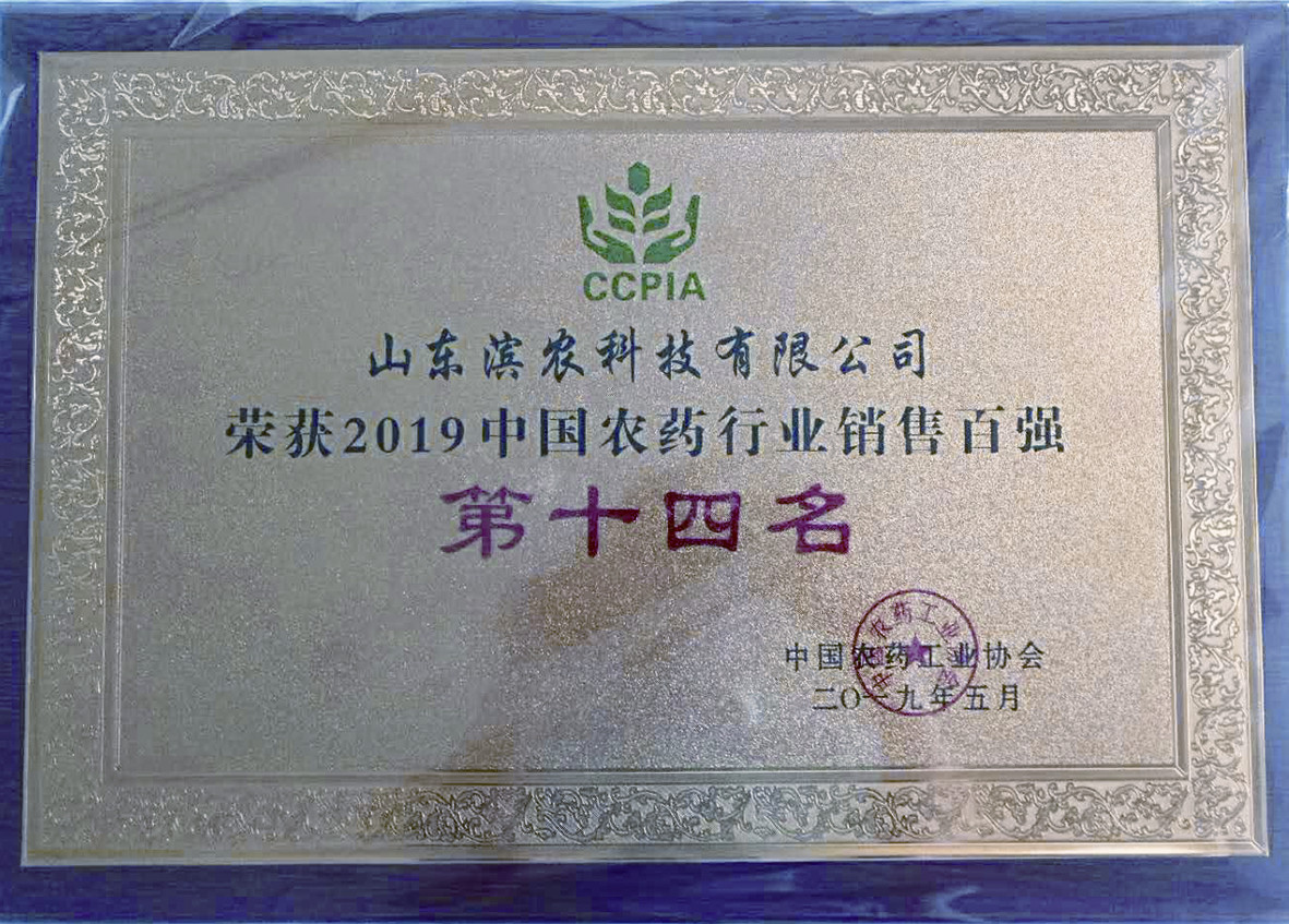 本報訊 5月15日, 2019中國農(nóng)藥行業(yè)銷售百強企業(yè)榜單在“第六屆農(nóng)藥行業(yè)經(jīng)濟運行分析會暨農(nóng)化行業(yè)排行榜發(fā)布會”上隆重揭曉,我公司以28.92億元的銷售額位居第14名。