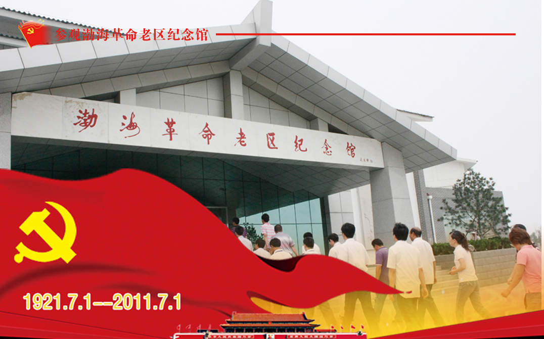 一次參觀是指參觀渤海革命老區紀念館。6月17日下午,黨團徽授牌結束后,在黨支部書記、副總經理李華帶領下,一行46人前往渤海革命老區紀念館參觀。李總一行在紀念館講解員的陪同下,瞻仰了中國共產黨創建、渤海革命區抗日戰爭、解放戰爭時期的重大活動、戰役的雕刻遺跡及烈士陵園墓,并在人民英雄紀念牌前獻花悼念。通過參觀,大家重溫歷史上血與火的斗爭、生與死的考驗的感人事跡,深深感受到和平與發展的來之不易。